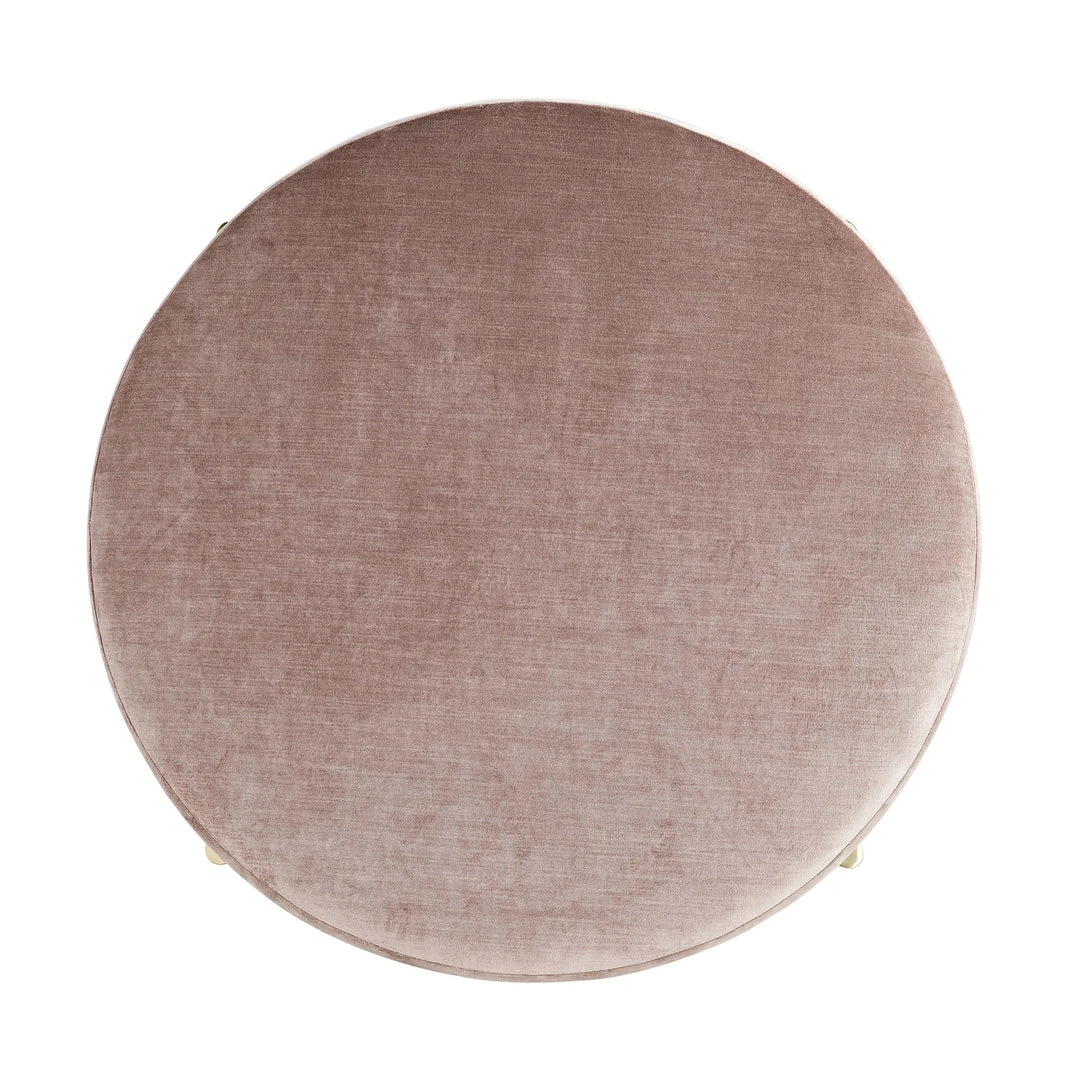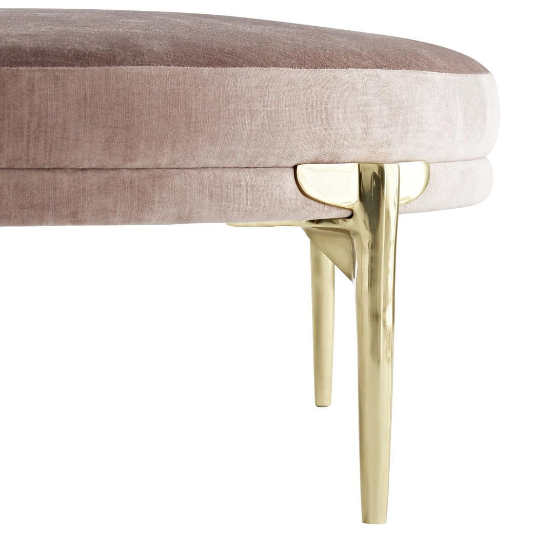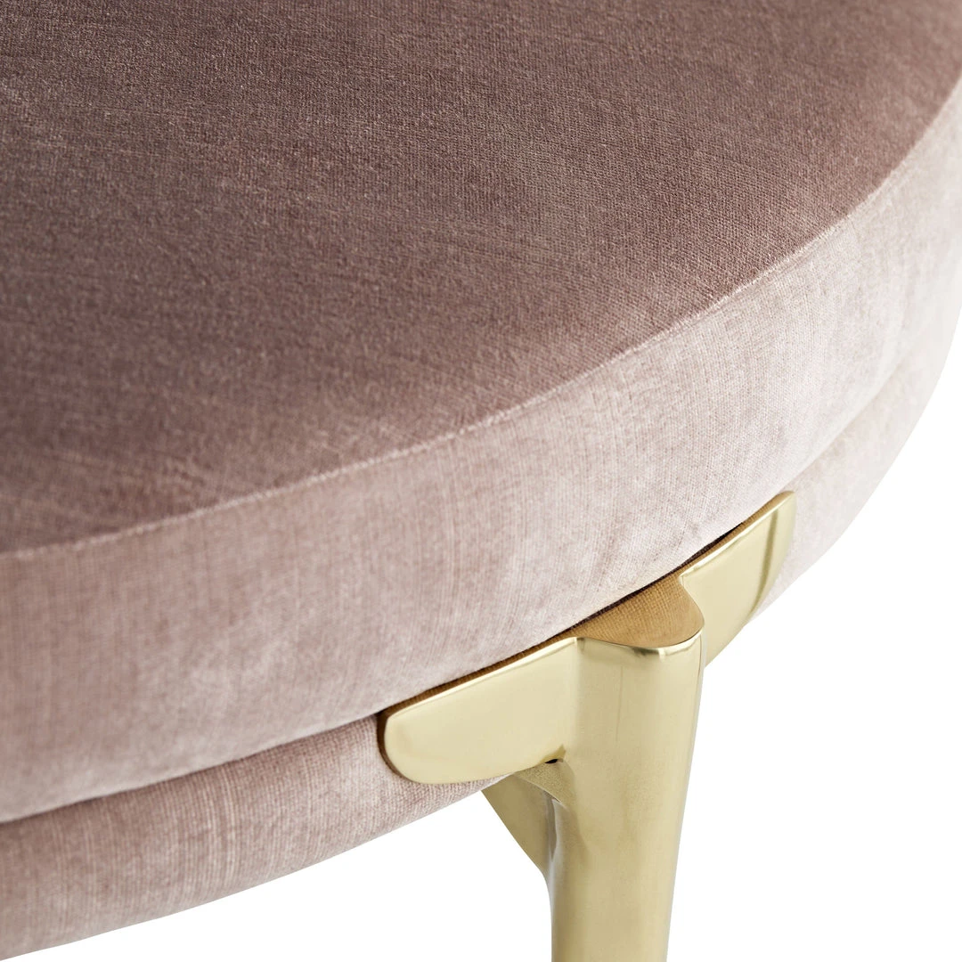 Enamored by the beauty of our Andrea Bench, the Andrea Round Ottoman from Arteriors Home is like an art deco level of sophistication and elegance. Every detail in this oversized rosewood ottoman speaks to its intrinsic beauty and glamour. A wide, plush seat upholstered in supple velvet gives you a comfortable place to rest, and the custom-crafted legs in a brushed brass finish give it a sleek look.