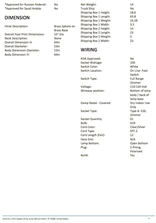 | Materials | Steel; Antique Brass Finish; Requires One 100watt Bulb; Dimmer; Off White Microfiber Drum Shade |