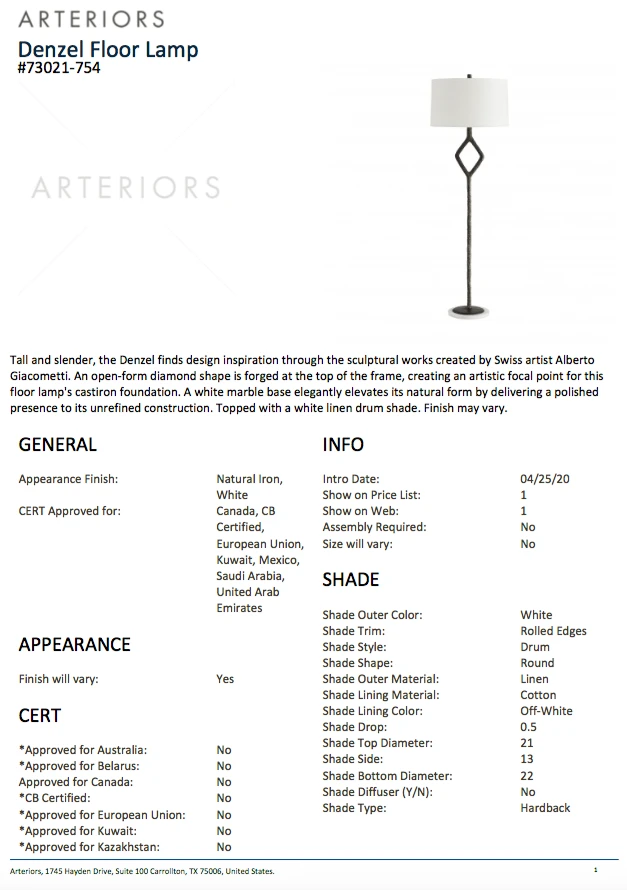Arteriors Home Denzel Floor Lamp New Arrivals