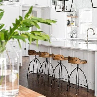 The Arteriors Home Hinkley Bar Stool blends rustic with chic. Natural material and industrial accents of the Hinkley make it the perfect seating for the kitchen. The swivel design makes it versatile to convenient for entertaining. As seen in Southern Living and House Beautiful Magazines!