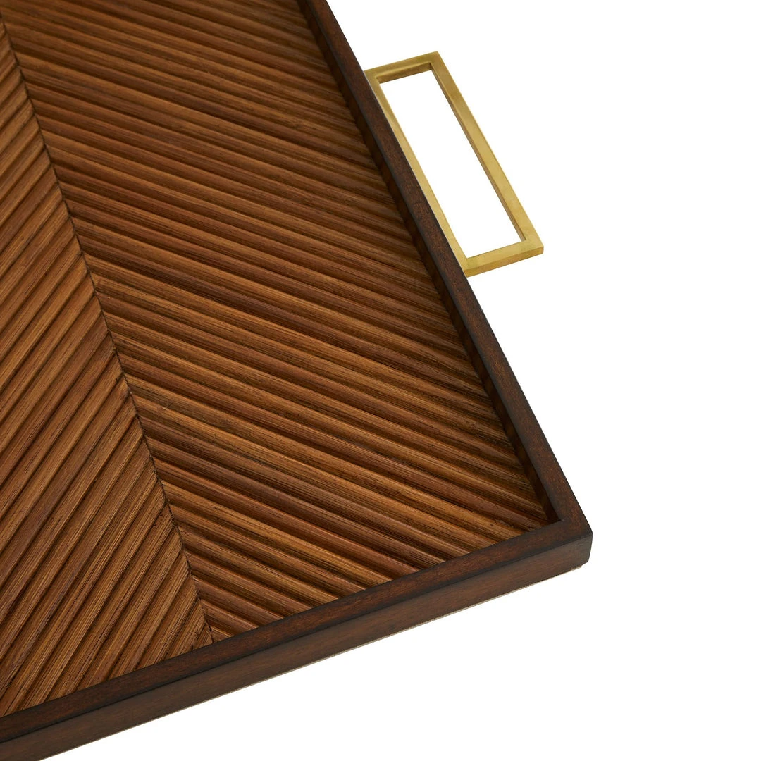 The Caribe Tray from Arteriors Home features warm toned rattan pattering and antique brass accent handles which give a stately look. Designed by Celerie Kemble, the Caribe has an intricate design of natural rattan that will be a great addition to any table top. Finish will vary.