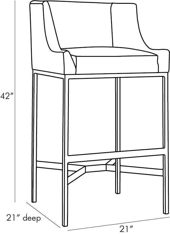 Take a seat in sophisticated style with the Dalia Bar Stool in Morel from Arteriors Home. Covered in a soft-to-the-touch morel leather, this stool features a squared back profile with slightly curved arms that gracefully flow into an antique brass linear base. Its shortened arm height allows it to easily slide under counters. Its versatile aesthetic complements both traditional and modern decor, making it an optimal seating option for various settings. *Finish and leather may vary.