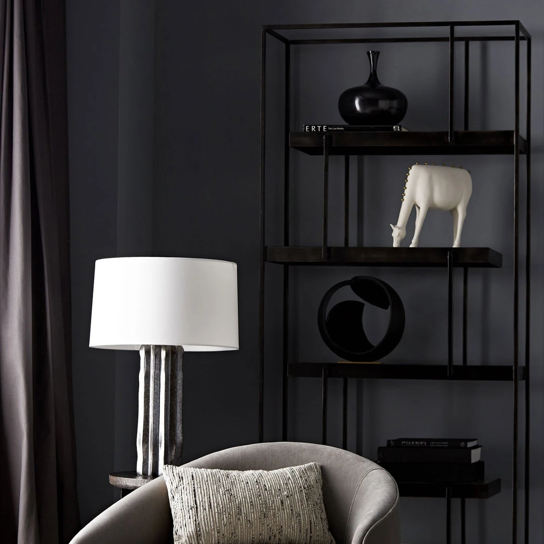 Inspired by the black lines that denote paintings created by Piet Mondrian—a pioneer of abstract art—the Daniel Etagere from Arteriors Home plays with space and scale. Framed in iron with a bronze finish, this multi-tiered unit features four glass shelves that appear to float within the open construction—delivering an airiness to its classic grandeur. A single mirrored shelf resides at the bottom, reflecting and refracting light. A great piece of shelving to showcase your prized possessions in full form. *Finish may vary.
