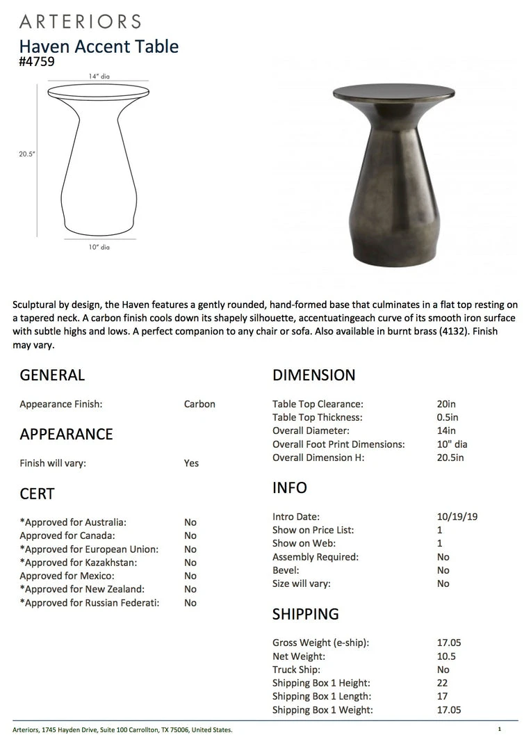 Be the first to review “Arteriors Home New Arrivals Haven Accent Table Carbon” Cancel reply