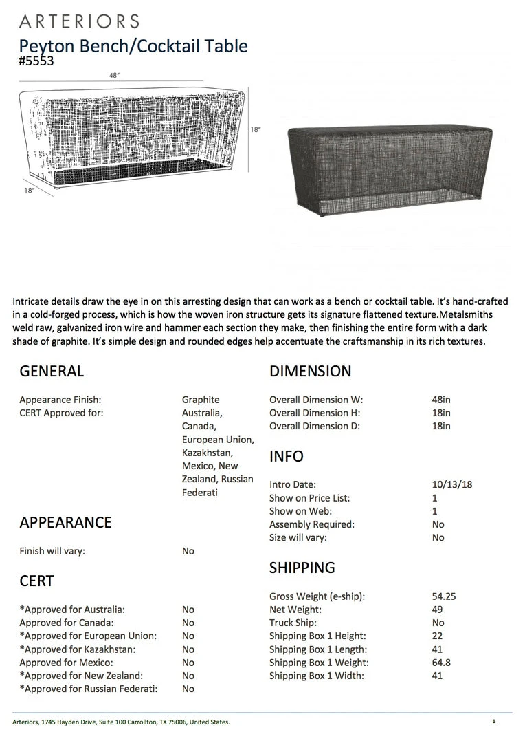 SKU: arteriors-home-1483585257520 Categories: Arteriors, Arteriors Home, Benches, Brands, Coffee Table, Furniture, New, New Arrivals, Seating, Tables Tags: Arteriors, Arteriors bench, Arteriors decor, Arteriors furniture, Arteriors seating, Iron, Peyton, Peyton Bench/Cocktail Table