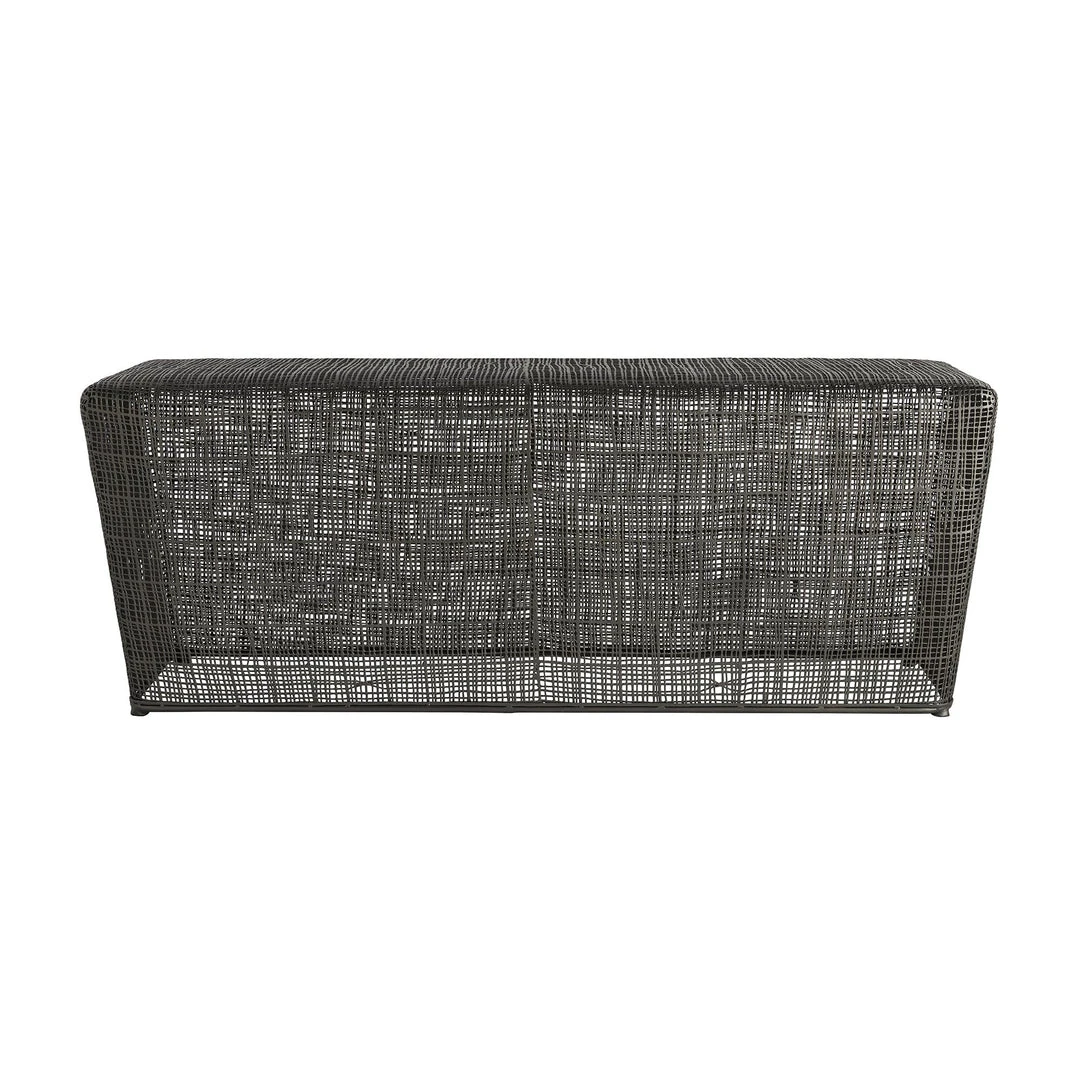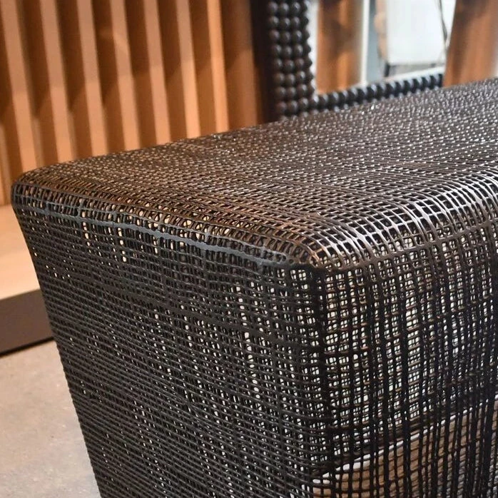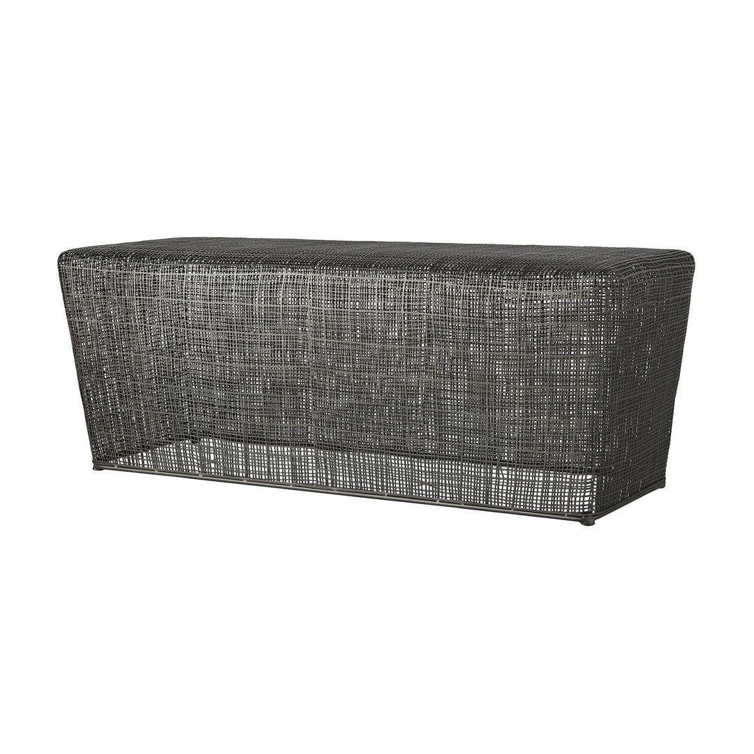 Intricate details draw the eye in on the arresting design of the Peyton Bench Cocktail Table from Arteriors Home. The Peyton is hand crafted in a cold forged process, which is how the woven iron structure gets its signature flattened texture. Metalsmiths weld raw galvanized iron wire and hammer each section they make, then finish the entire form with a dark shade of graphite. It’s simple design and rounded edges help accentuate the craftsmanship in its rich textures.