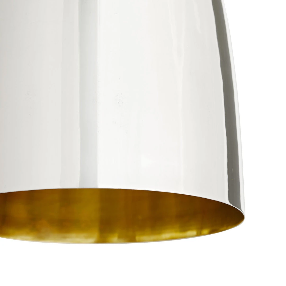 The Arteriors Home Savoy Pendant in Polished Nickel features a curved polished nickel exterior and a brass-plated interior, creating a high impact look. The Savoy fixture is simple and sleek and ideal for the kitchen over an island. Place these contemporary hanging lights from Arteriors in a row in the hallway for an overall modern look.