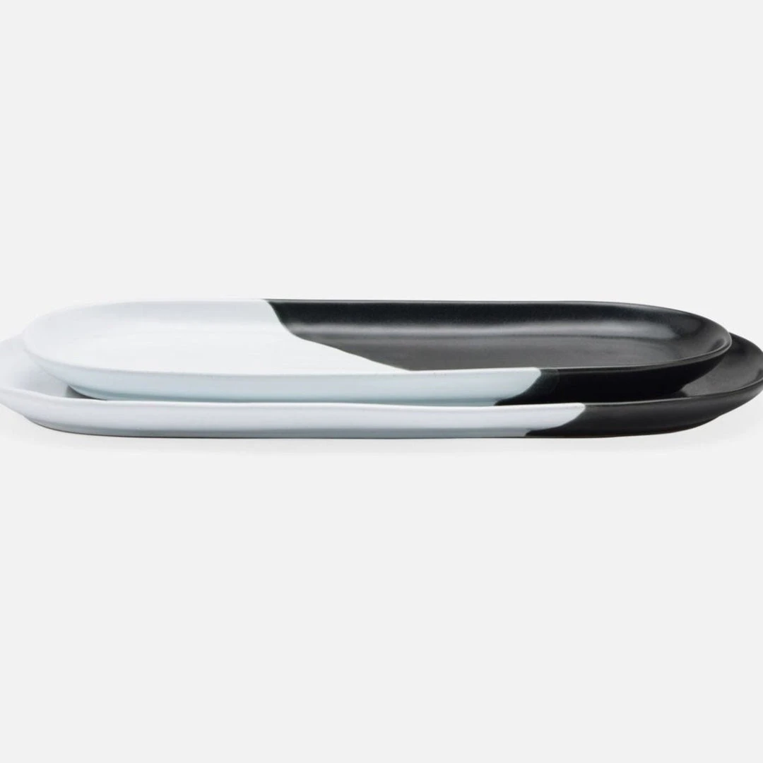 The Landen Serving Platter Set from Blue Pheasant proves that opposites attract. Its bold black and white style is sure to spark conversation at the table. Microwave safe, dishwasher safe, oven safe, and freezer safe. Variation to be expected. Comes in a set of two.