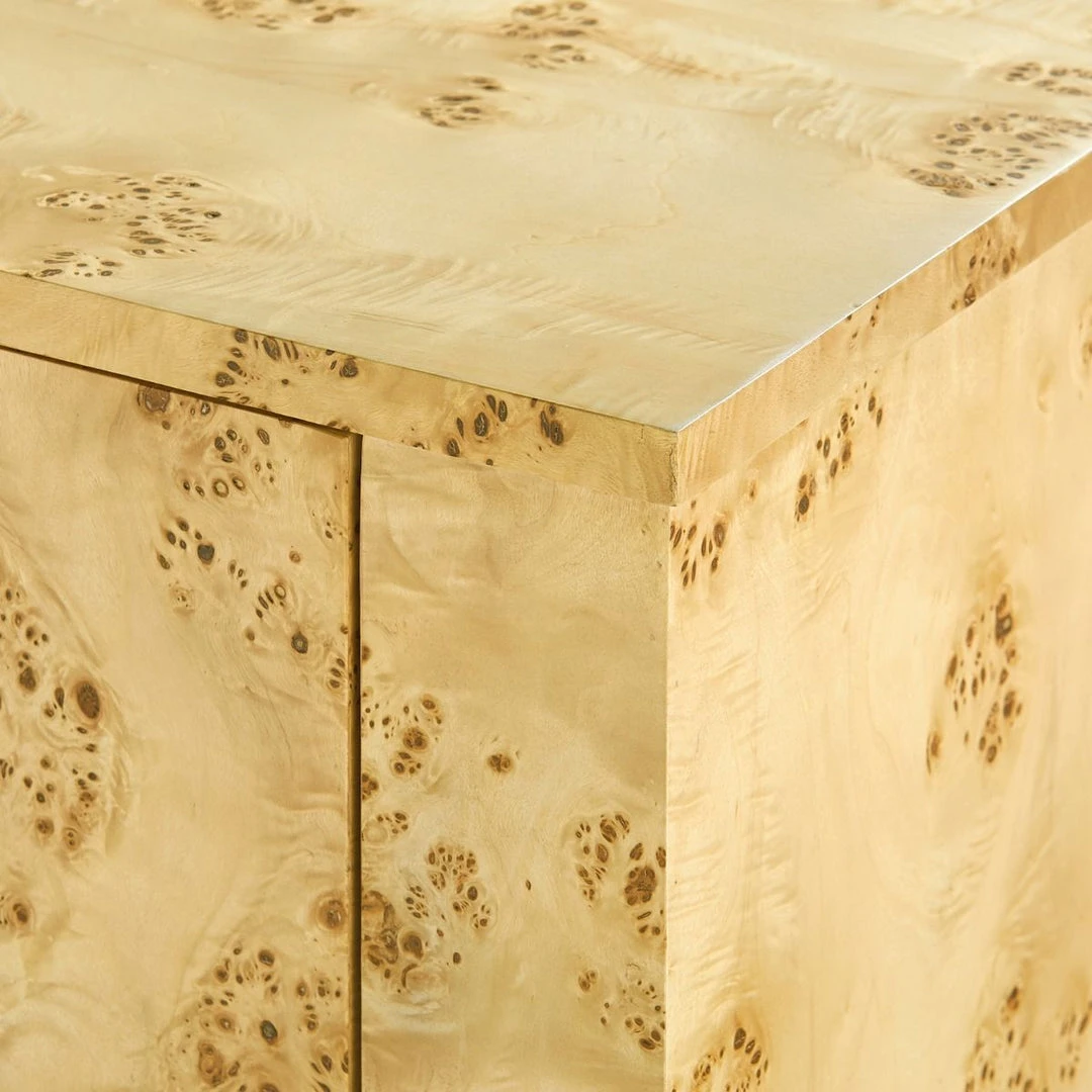 | Materials | Burl-wood Veneer; Brushed Brass Accents; Oak Veneer Interior With European Hinges And 2 Adjustable Shelves; Back Features Holes For Cable Access |