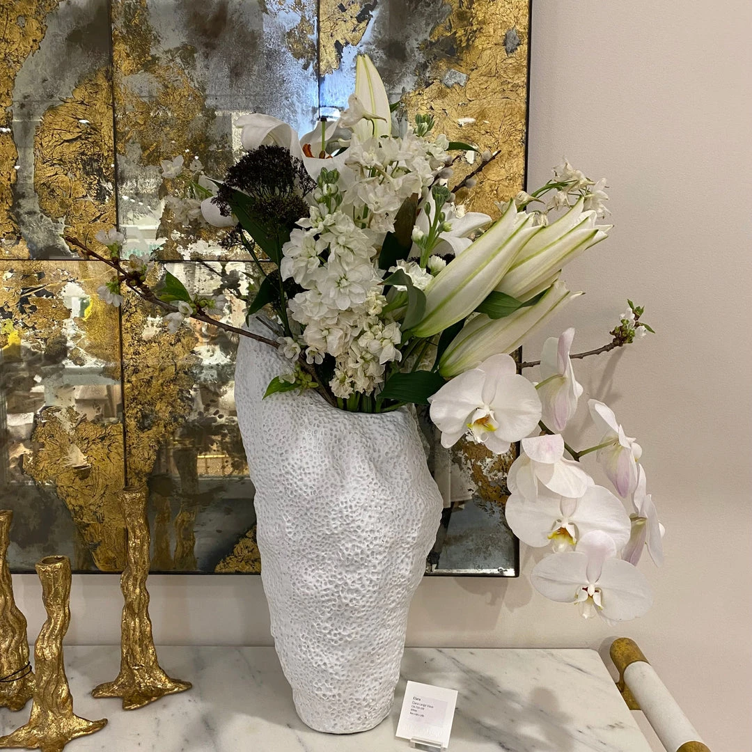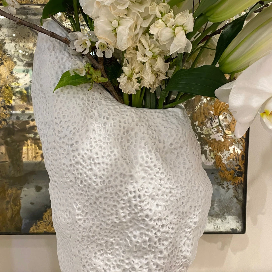 The Ciara Vase in White from Bungalow 5 takes it’s inspiration from forms encountered in the natural world. Borrowing from coral reefs, to forests, to natural rock outcroppings, our artisans have created the Ciara in white matte porcelain that celebrate the beauty and the asymmetry forms encountered in both land and sea. Stunning in their originality, this vase serves either decorative objects, for example gracing center table or a dining table, or as vases holding floral arrangements.