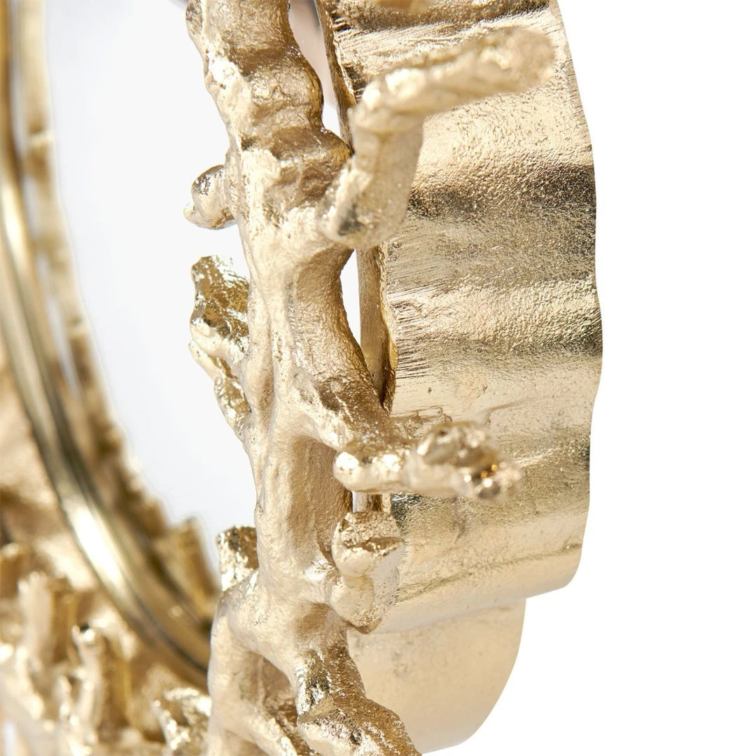 The Europa Mirror in Gold from Bungalow 5 is glamorous, interesting and artisanal. The wall mirror’s metal base is sand-casted by hand, a process that uses molds made of sand to accurately replicate a designer’s intended form with sharpness and specificity, and is finished in brass. The shape simulates organic materials—reminiscent of branches. A round convex mirror is inlaid for a jewelry-like finish and implies the item’s name, Europa.