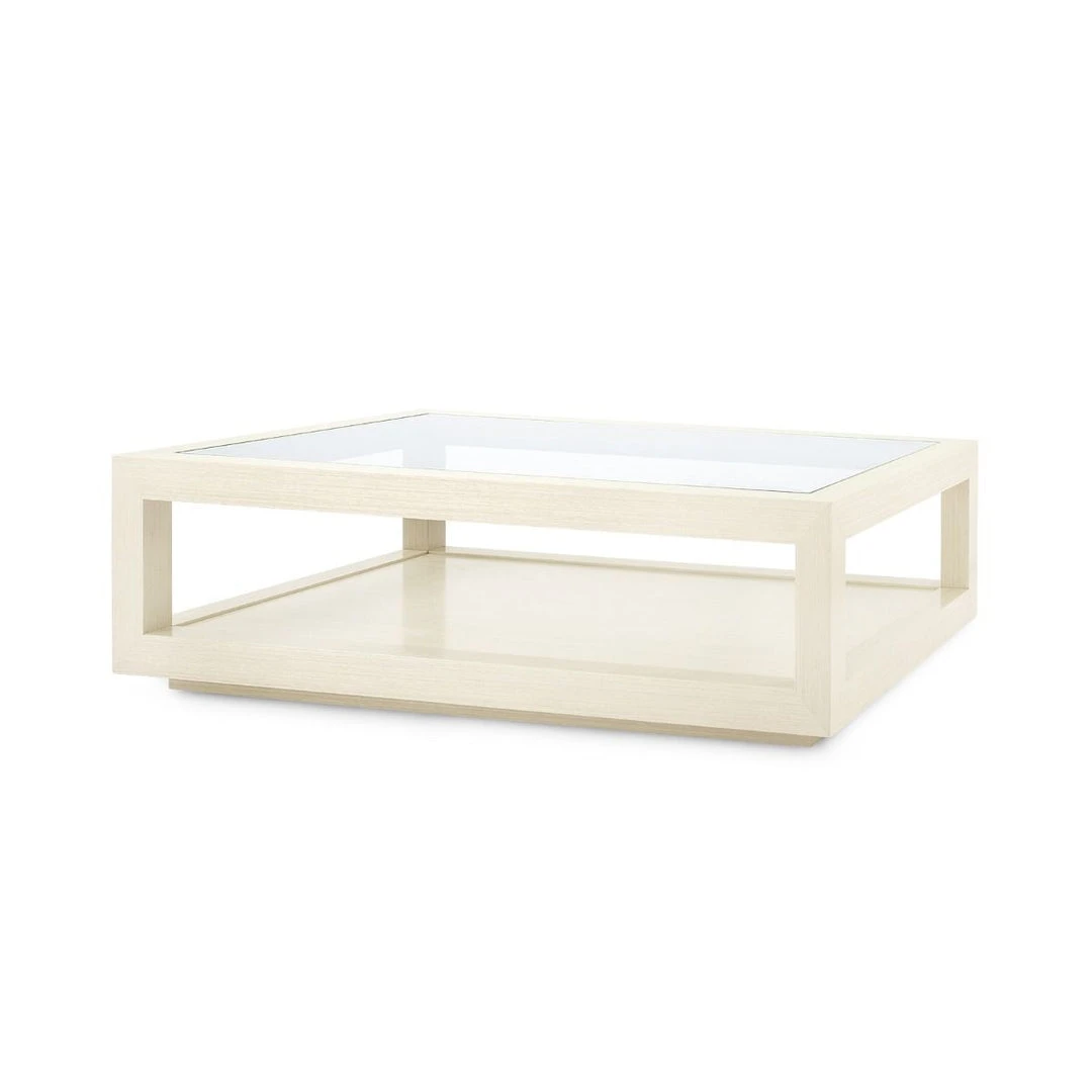With champagne-colored finishes and a floating glass top, the Gavin Large Rectangular Coffee Table in Blanched Oak from Bungalow 5 is a designer’s dream. If you’re looking for that perfect piece that is slightly dressy but not over the top or frilly, the Gavin is for you. Accented with glass and a recessed base, the Gavin Large Square Coffee Table is a standout for your next bedroom, living room, or study. Strategically place coffee table books under the glass top for a peek-a-boo effect.