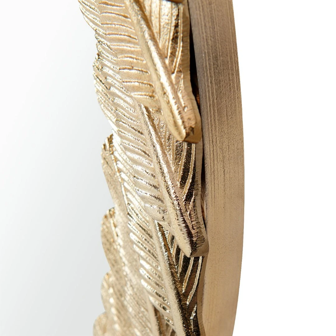 | Materials | Clear Mirror; Brass Finish Metal; Feather Border; Sand-Casted by Hand; D-Rings Installed for Hanging |
