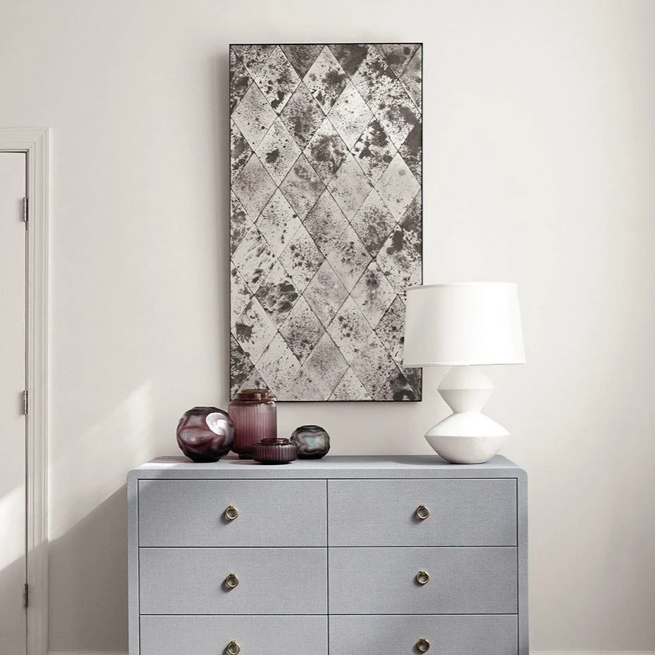 The Harley Mirror from Bungalow 5 balances geometry and artfully distressed silvering. Each diamond-shaped panel is individually hand-cut, antiqued, and finished with a bronze finish. Perfect for entryways, offices, and living spaces, place the Harley anywhere you need a dash or dramatic style.