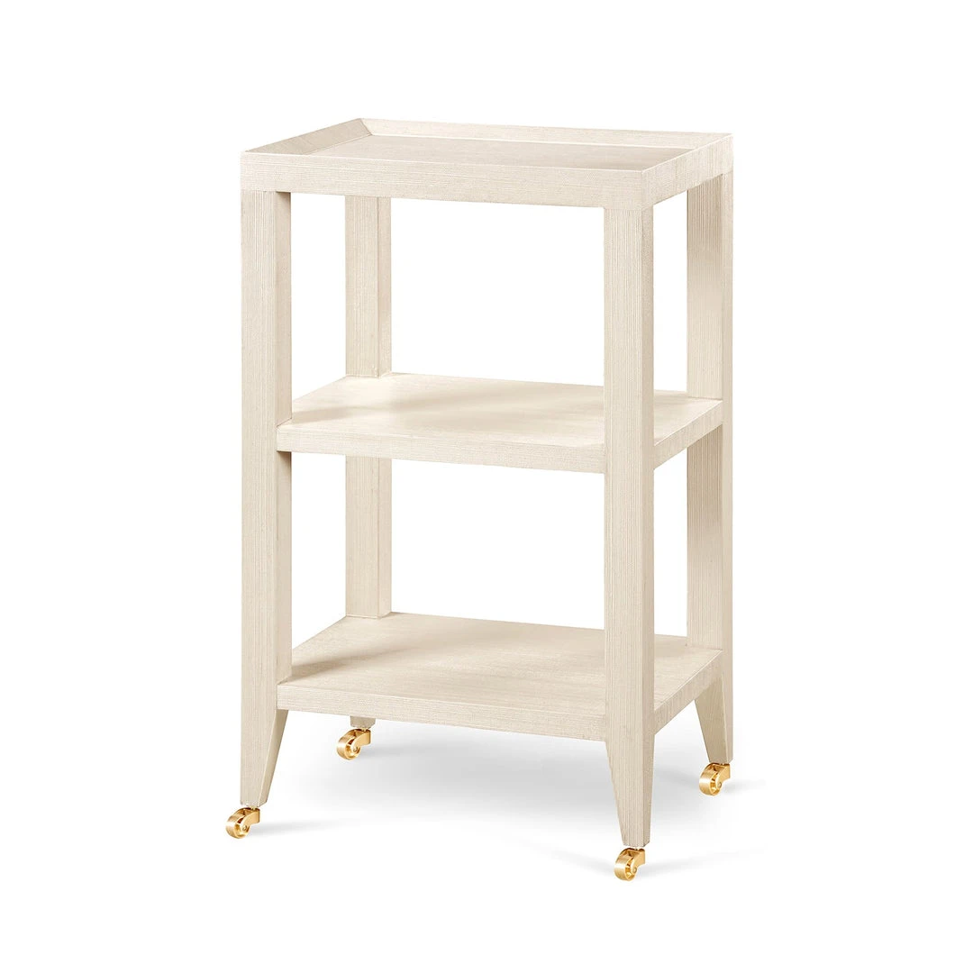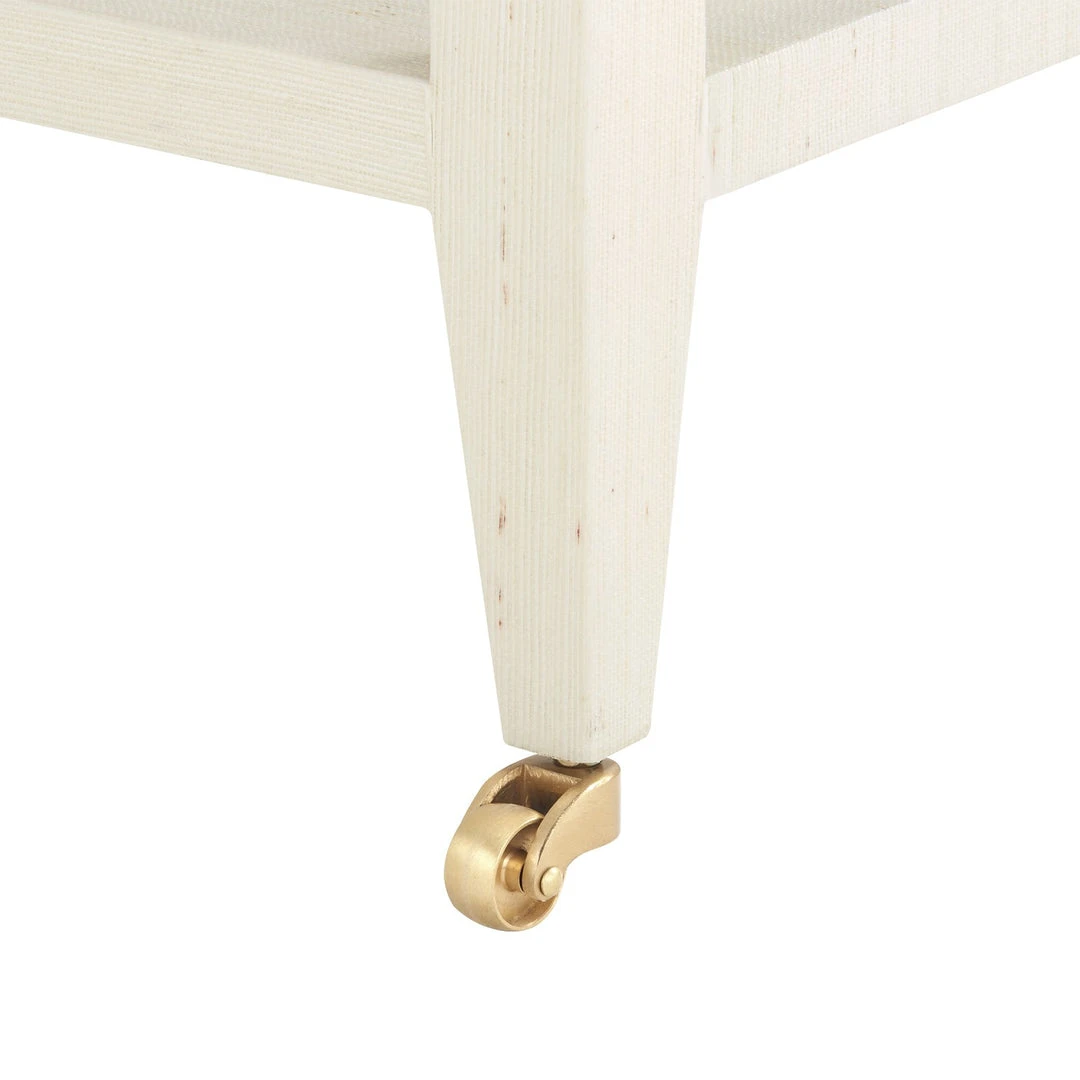 The Isadora Side Table in Natural from Bungalow 5 features modern designbalanced withh purposeful consideration of texture, pattern, and luxury. This sophisticated and functional table is inspired by the designs of Karl Springer. The Isadora offers gallery edges, inset sculptural legs, brass wheels and useful shelves. Ideal for a variety of living spaces, place the Isadora individually as a side table next to your favorite chair or in pairs on either side of the sofa.