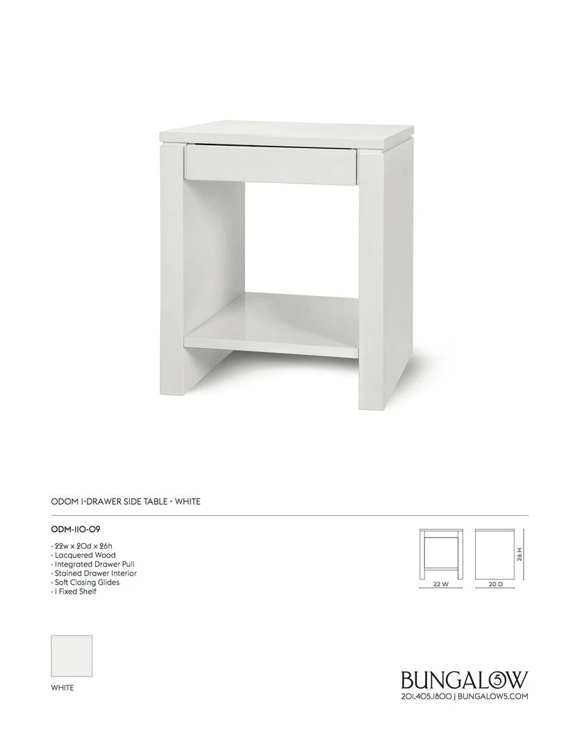Bungalow 5 New Arrivals Odom 1 Drawer Side Table White