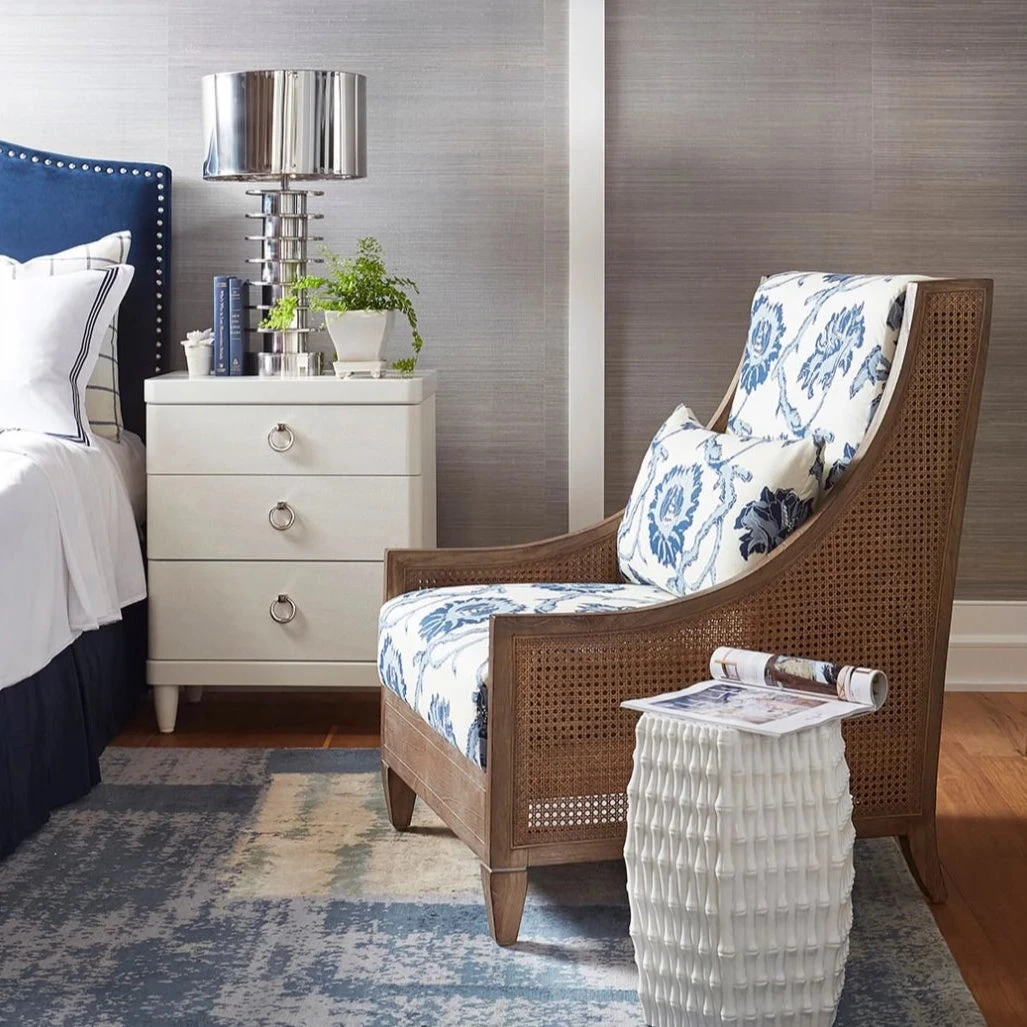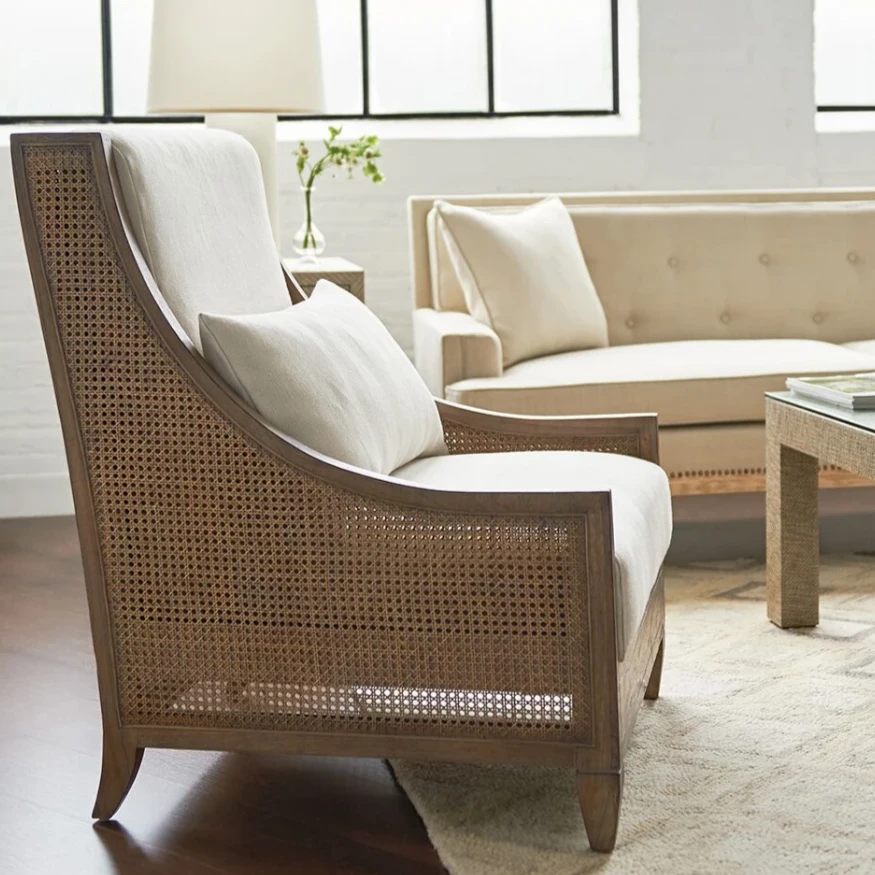 Bungalow 5 presents the Raleigh Club Chair in Driftwood, a resort inspired take on a classic French design. The Bergères design suggests a lightness from exquisite caning and drama from bold, flaring arm support. Utilizing sustainably harvested Cape Lilac Mahogany, the weave and hand tied caning on this elegant chair capture the perfect balance of beauty and comfort. Place the Raleigh in pairs in the living room or individually as a desk or vanity chair.