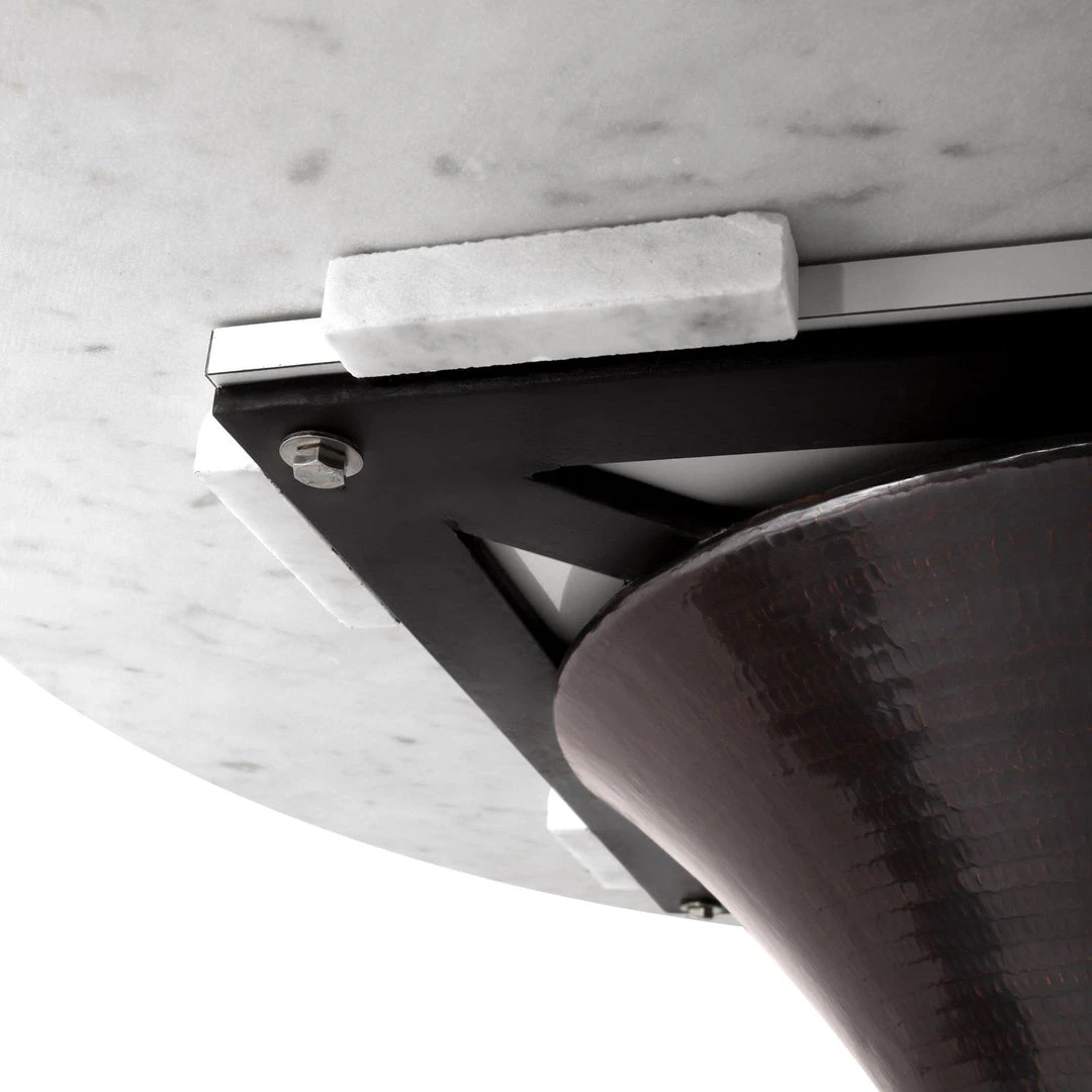 | Materials | Bronze Finished Copper; Top Table Attach Bracket; Carrera Marble Base can hold up to 93 lbs; Sealed and Polished; Assembly Required |