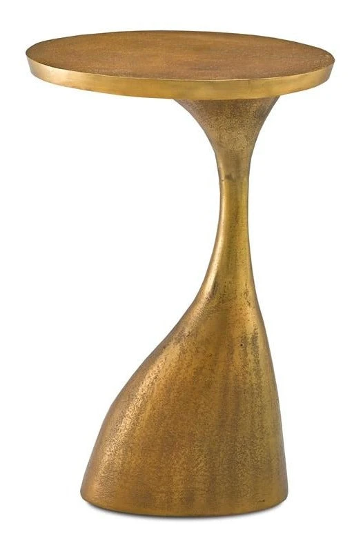 With its organically shaped pedestal, the Ishaan Accent Table from Currey and Company delivers sculptural accent furniture to your home. The dexterous design made of cast aluminum has been treated to a luxurious antique brass finish. The Ishaan has been given a hint of patina by skilled artisans lending it a time worn appeal. Place the Ishaan in living spaces and home offices for an eye catching visual element.