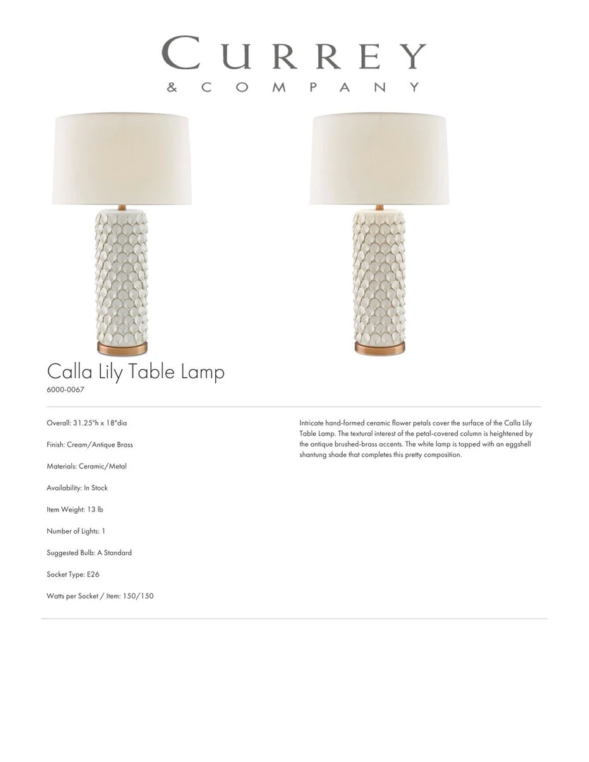 Currey And Company New Arrivals Calla Lily Table Lamp