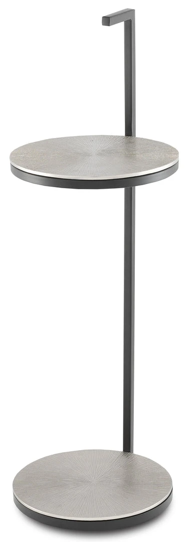 The Cane Drinks table from Currey and Company is simple yet interesting in design. The multi-level table is made of iron in a black finish and circular discs of cast aluminum in a silver finish. The silver drinks table is easy to move from place to place.