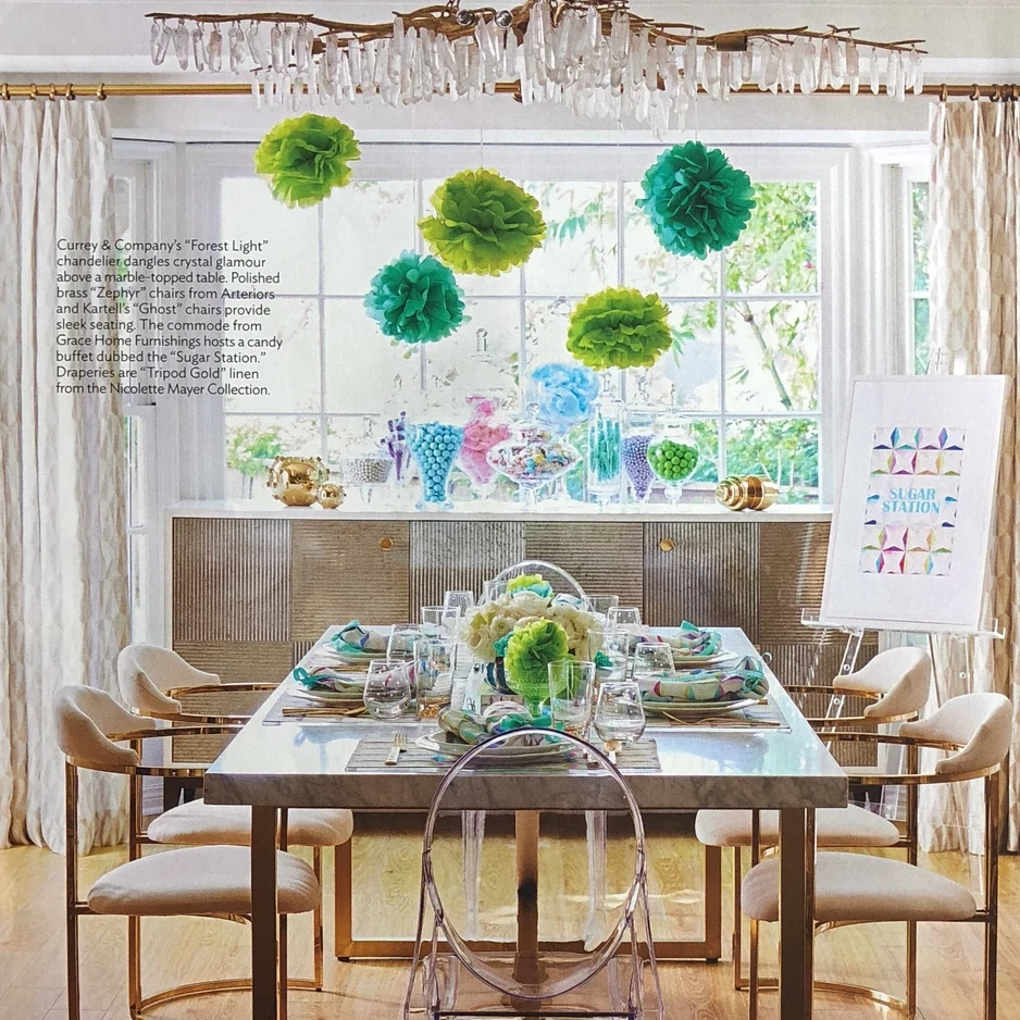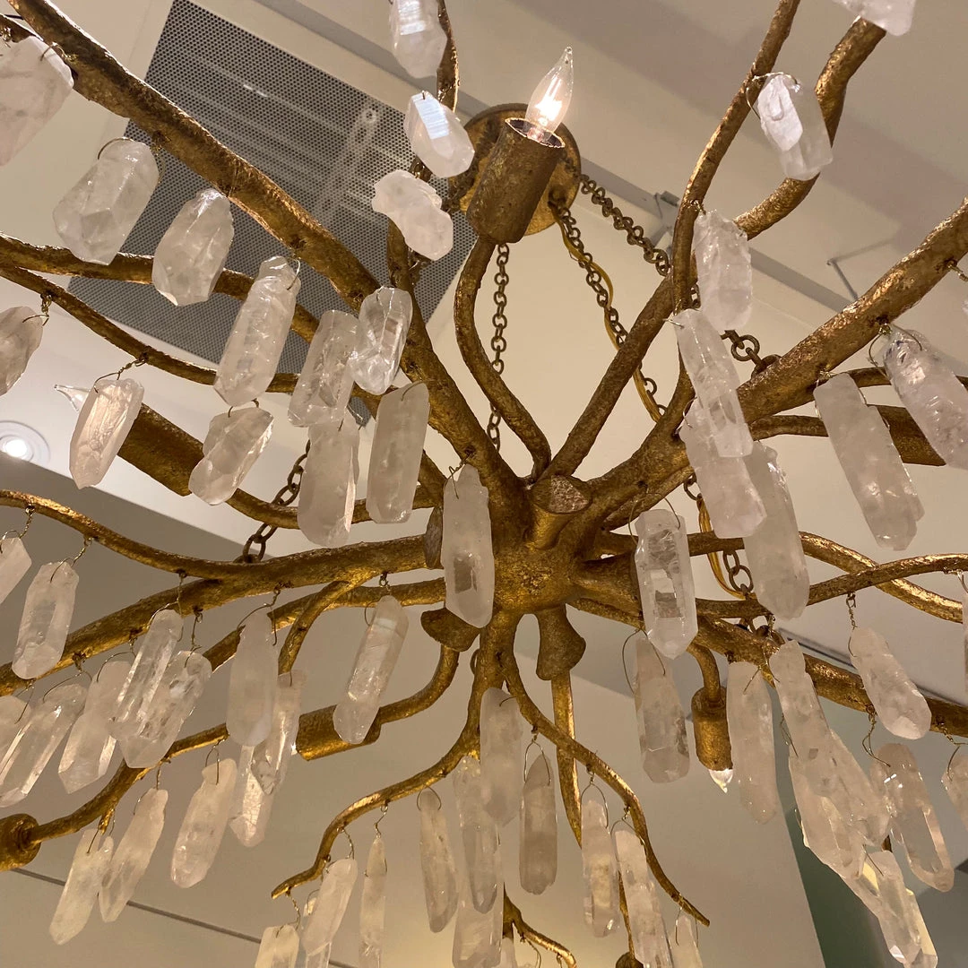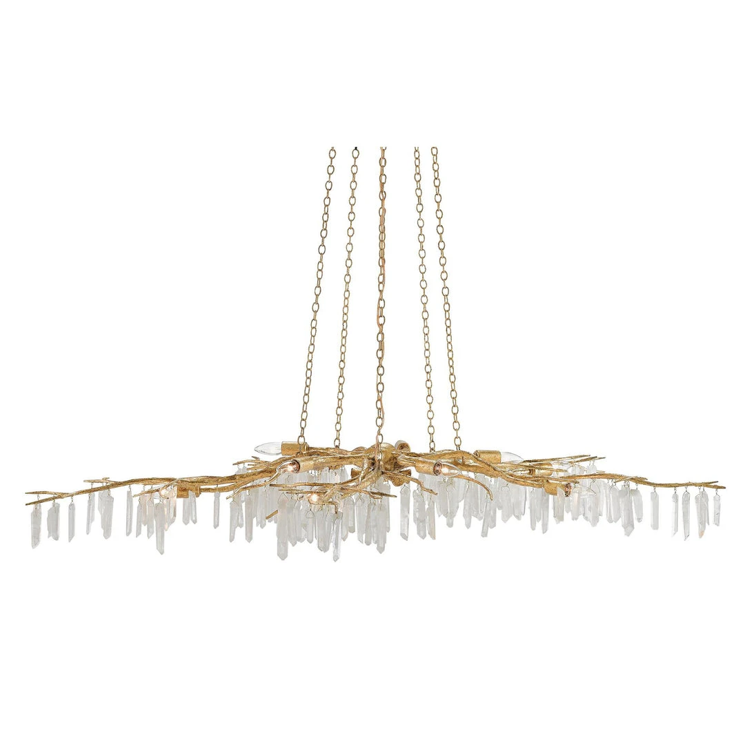 Currey & Company delivers the simply stunning Forest Light Chandelier, dripping with white quartz pendants that are suspended on washed lucerne gold chains! This exceptional lighting, a decadent objet d’art, transforms any space in the home from the foyer to the bedroom to the dining room.