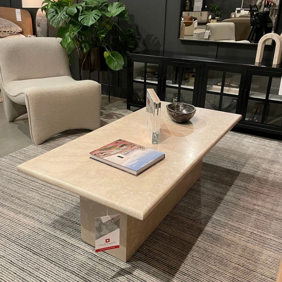 Inspired by the grand Italian design of the 1970s, the Arum Coffee Table in Cream Marble from Four Hands delivers the ultimate modern style to any living space. This monolithic coffee table is made entirely from solid marble in a soft cream.