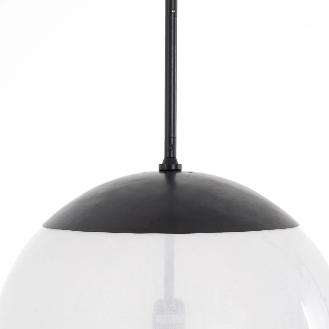 Simplicity is key with the Sutton Pendant in Antiqued Iron from Four Hands, A globe-style pendent of frosted glass suspends for ultimate impact. Great solo, even better in multiples. Edison bulb recommended.