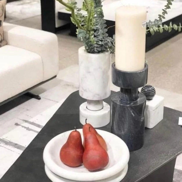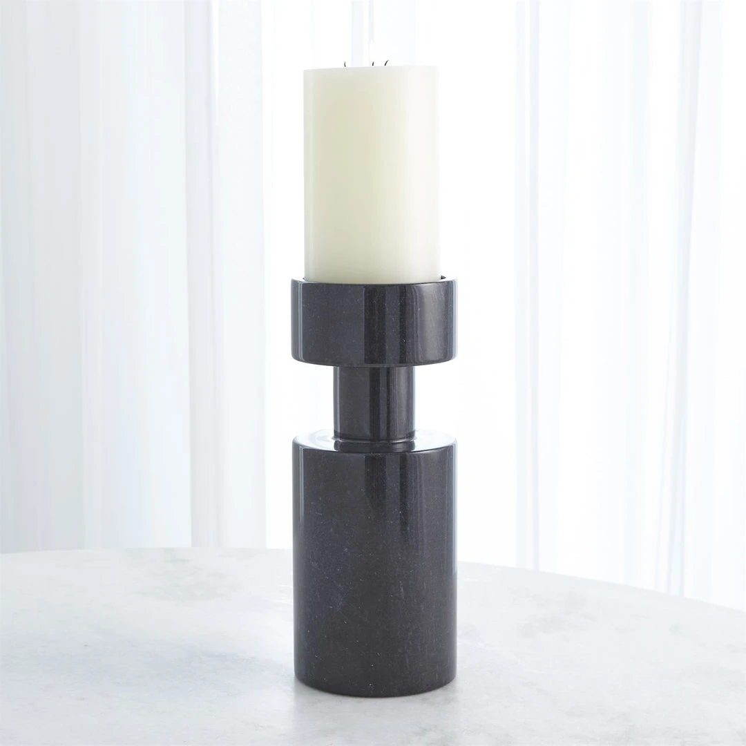 Chic and unapologetic the Luc Vase in Black Marble from Global Views is carved from solid marble block and doubles as a pillar candle holder. Designed by FORM Design Studio exclusively for Global Views, this beautiful piece is the perfect accessory to grace shelving and tabletops alike. Also available in white marble.
