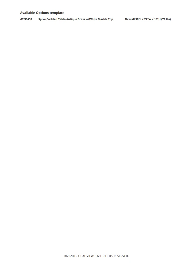 Be the first to review “Global Views Spike Cocktail Table Antique Brass White Marble” Cancel reply