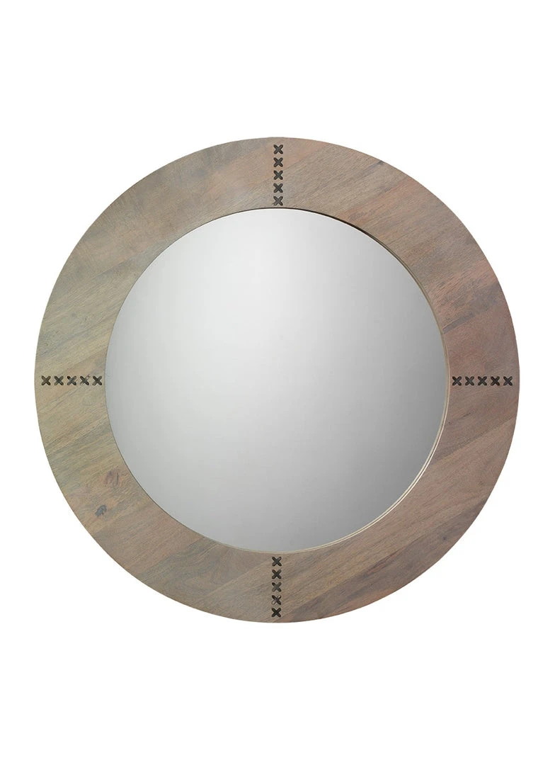 | Materials | Mango Wood; Grey Wash; Antique Silver Finish; Mirror Glass Surface: 25.5"Diameter; Mirror Frame: 5.25" Wide; Hanging Hardware: D-ring Strap Hangers With Wire. |