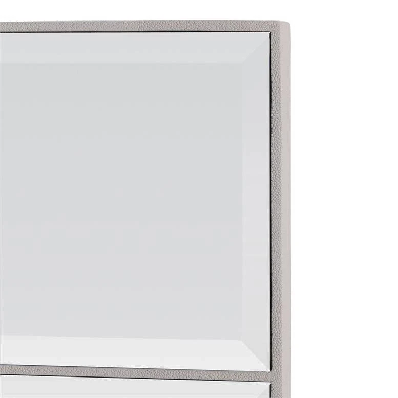 The Ariela Mirror from Made Goods in a castor gray faux shagreen finish is chic and sophisticated. The beveled mirror panels are sleek and modern adding just the right amount of luxury. Available in two rectangular sizes, the Ariela Mirror is ideal for an entryway or bathroom.