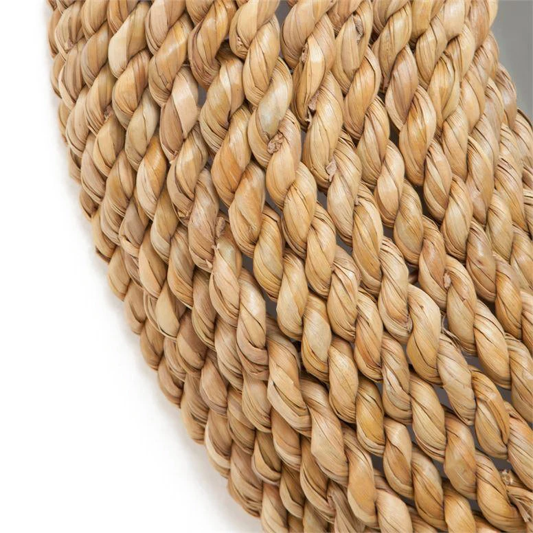 Made Goods Cohen Mirror in Natural Roped Seagrass showcases a round, contemporary wall mirror, perfect for beach condos, mountain retreats, and homes. Decorative mirrors like the contemporary Cohen add a relaxed, casual ambiance to any space. Add function and style to your bathroom by using a pair of these fixtures as vanity mirrors, or consider using wall mirrors like the unique Cohen in entryways, kitchens, or bedrooms. As seen in Architectural Digest.