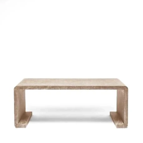 The Made Goods Gustav Coffee Table in warm silver features a beautiful waterfall design. The modern coffee table is covered and finished with a faux waxed linen creating an overall luxurious effect. Use this cocktail table as a living room coffee table for maximum style. The neutral coloring on the Gustav coffee table works well with any design.