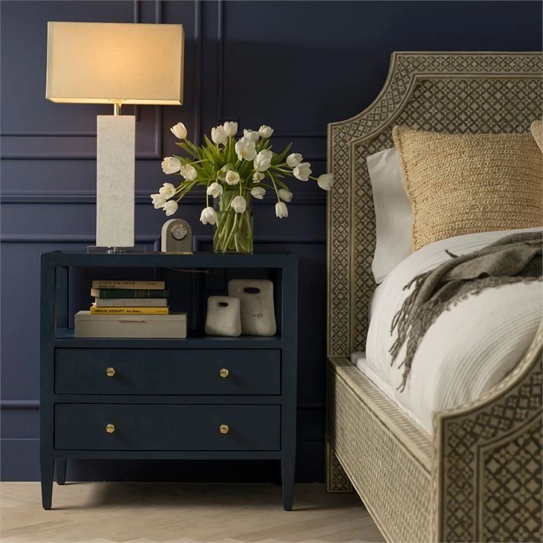 Made Goods Jarin Double Nightstand Dark Navy Faux Belgian Linen