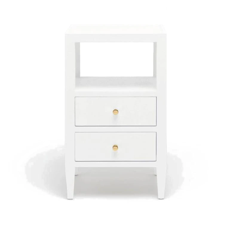 The Jarin Single Nightstand from Made Goods is a timeless and sophisticated furniture piece. The Designer White Faux Belgian Linen is perfectly balanced against the gold hardware while the two drawers feature the perfect amount of storage. The Jarin Singe Nightstand from Made Goods furniture is an ideal choice for bedrooms and living spaces alike.
