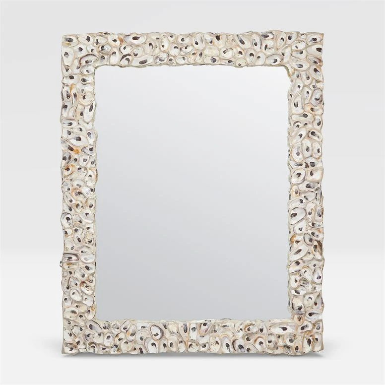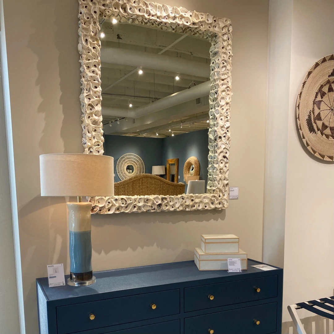Whole, unpolished oyster shells create the bold profile of the Buford Mirror in Large from Made Goods. Each shell is hand placed and set in resin. The result is a coastal vibe with an organic edge. Quite the statement maker!