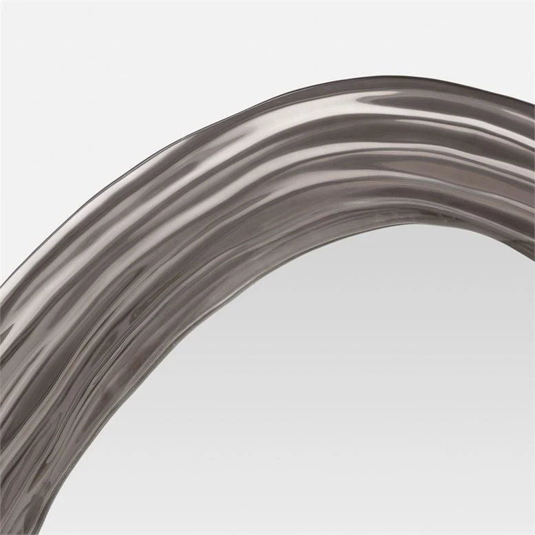 The Hetty Oval Mirror in Smoke Translucent Resin from Made Goods features layered, wavy lines that lighten any space. This striking oval mirror has a rippled bevel style frame with an approximate 4” depth. The Hetty is the perfect statement mirror for entryways, bathrooms, and bedrooms.