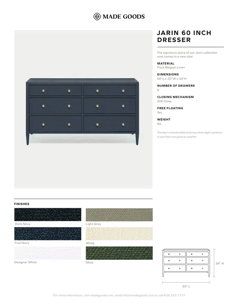 Made Goods New Arrivals Jarin 60″ Dresser White Faux Belgian Linen