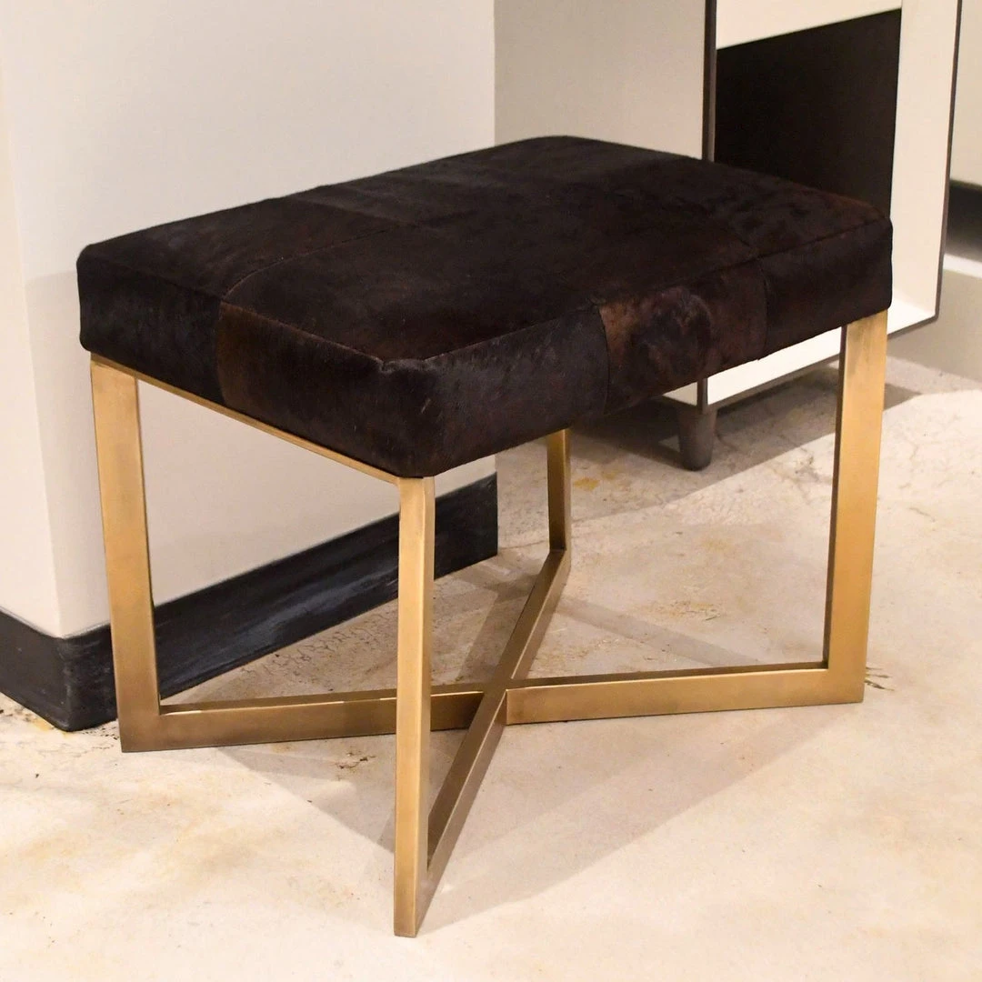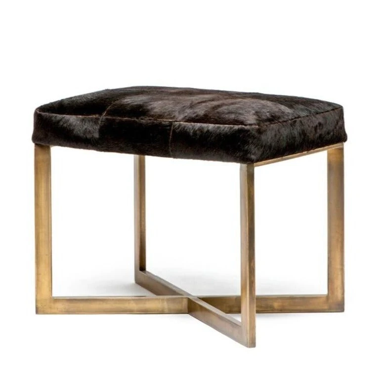 Made Goods New Arrivals Roger Single Bench Dark Brown Hide With Antique Brass Base
