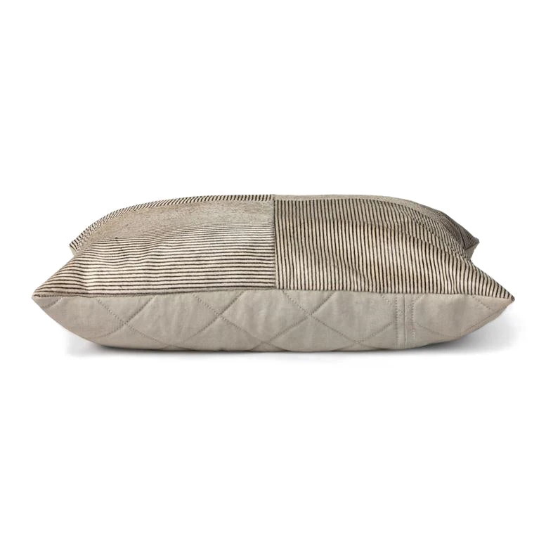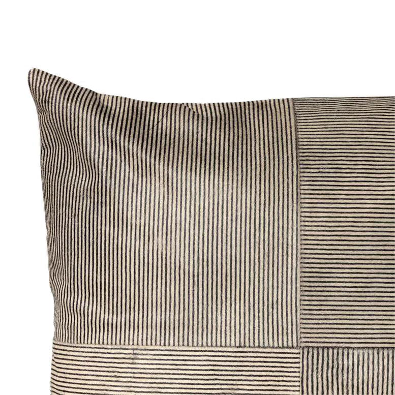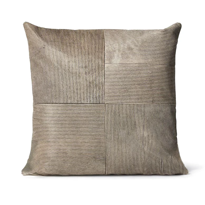 The Quincy Square Pillow from Made Goods features four panels of striped hide showing variable shades depending on the way the grain lies. The unpredictable nature of the fabric makes for an interesting piece. Available in two sizes, this durable, high quality leather may show inherent markings, distressed appearance, and variations in pattern. *Natural variations in this material may occur. *Sold in a set of two.