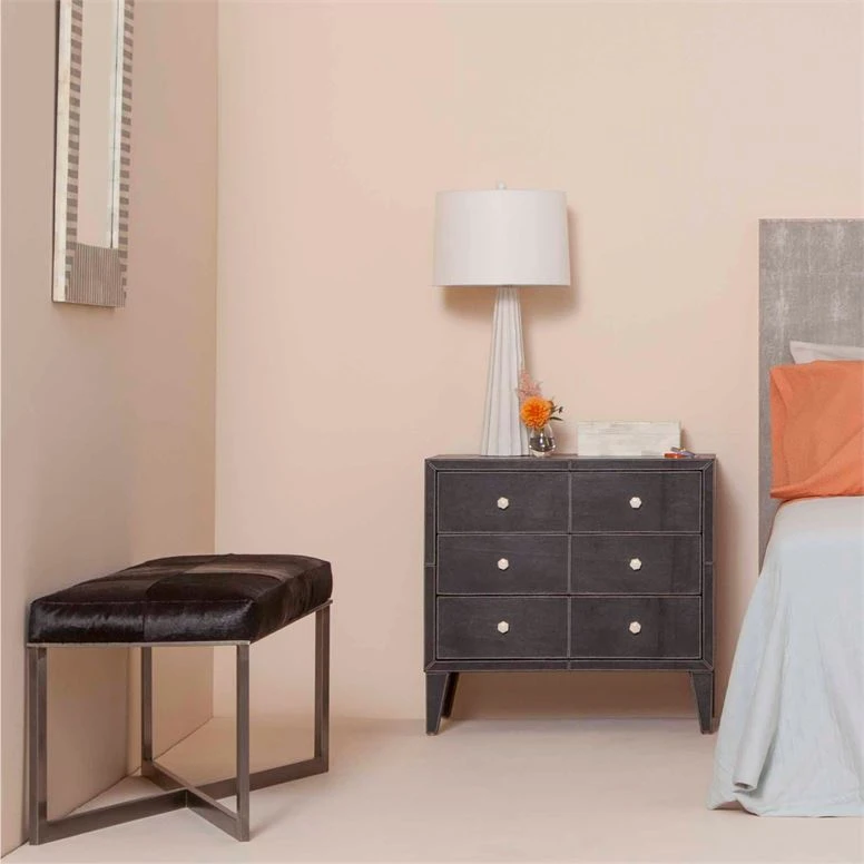 The Roger Double Bench in Dark Brown Hair on Hide Leather from Made Goods brings a high-end ambiance to seating. With a dark brown cowhide cushion shaped like a rectangle and supported by a silver metal base, this large cowhide bench is a perfect addition to living rooms, bedrooms, and great rooms. This item is handcrafted and may show a slight variation in size from one piece to another. *Natural variation to be expected. This item is handcrafted and may show a slight variation in size from one piece to another. *Natural variation to be expected.