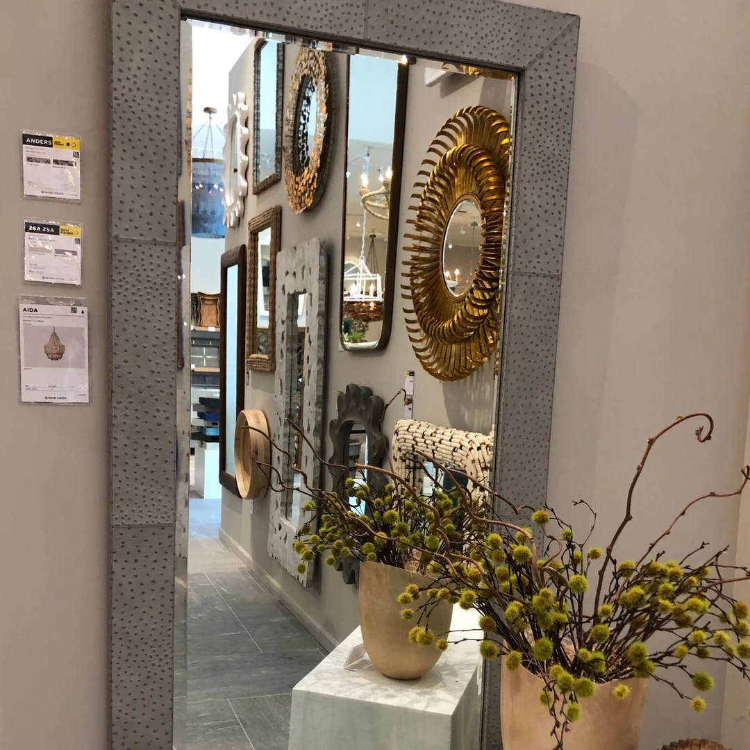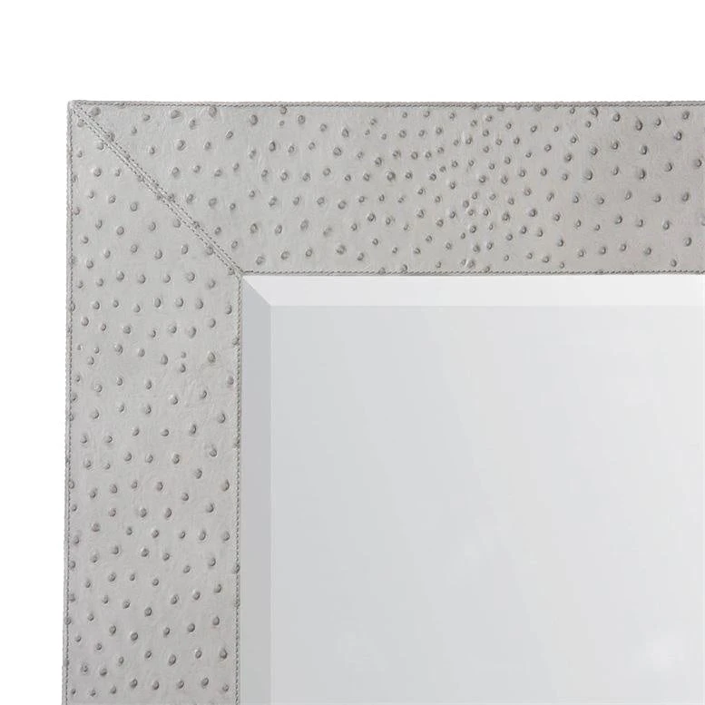 The Zsa Zsa Mirror in Grey Ostrich Full Grain Leather from Made Goods delivers a modern wall mirror for any room in your home or office. Decorative mirrors like the rectangular Zsa Zsa add drama and style to your space, making this full grain leather beauty a must have. This statement piece features real full grain leather embossed with an ostrich texture. The Zsa Zsa is the perfect floor mirror for a designer look in entryways, Master Suites or bathrooms.