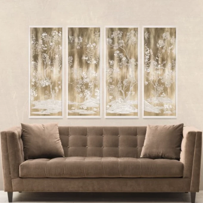 The Natural Curiosities features the Gold Tree Panel 4 Artwork, offering an artful and natural feel to your home. The Gold Tree is made from acid free environmentally sourced paper and intricately applied gold leafing. Framed in acrylic, place the Gold Tree Panel 4 Artwork individually or in a composition as part of the Gold Tree Panel series.