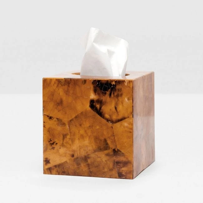 Add an instant air of sophistication to your decor with the Cannes Tissue Box in Young Pen Shell from Pigeon and Poodle. The tortoise shell-like elegance of the Cannes collection is the perfect choice to deliver designer style to your bathroom. Pair with the entire Cannes Collection for the complete look.