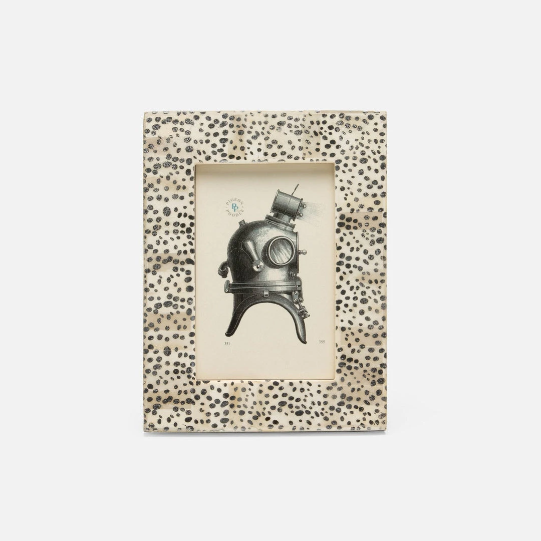The Ismailia Frame in Spotted Silver Bone from Pigeon and Poodle showcases your memories in chic style. The Ismailia features a blend of whimsy and opulence, with gleaming gold or silver spots on bone.