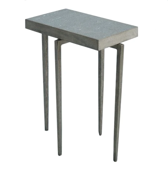 The Laforge Accent Table from Studio A is showcased in a natural iron. The natural iron works perfect juxtapose the flamed granite top. This side table is a simplistic design but offers a unique edge with its tapered legs. Tables such as the Laforge Accent Table from Studio A work great in the living room, bedroom room, or foyer.