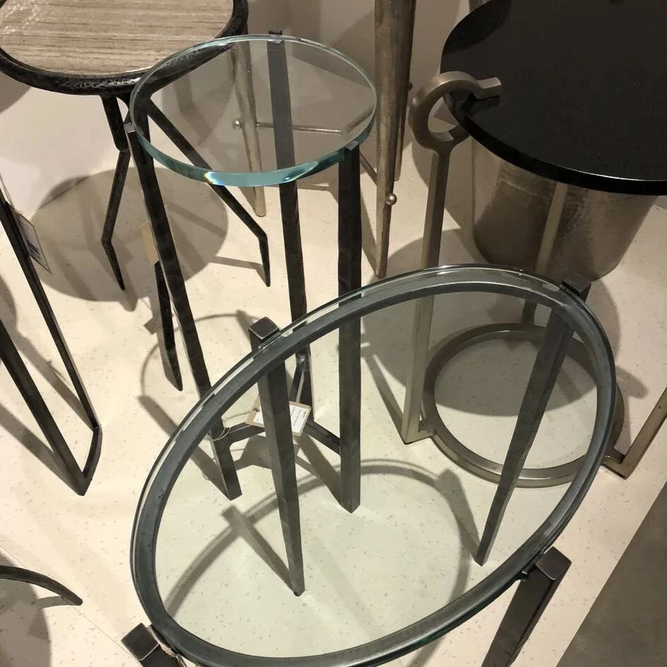The Petite Oval Accent Table in Natural Iron from Studio A is simple and discrete. The elegant, hand forged tapered legs and clean profile allows for seamless integration into any interior design style. Crafted from tempered glass and iron, this lovely accent table delivers a beautiful modern, contemporary vibe to your home.