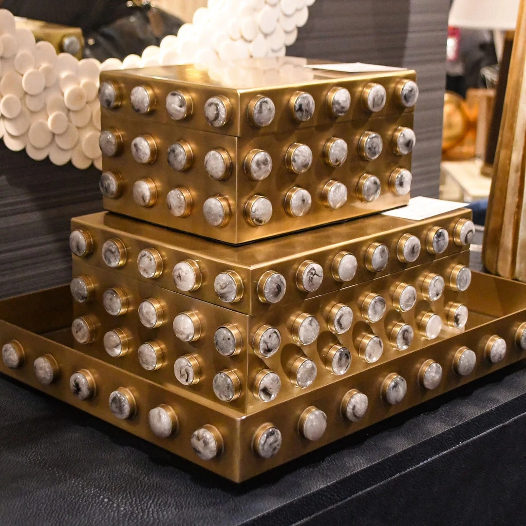 | Materials | Metal; Brass Finish; Inset Mirror; Resin Appliques |
