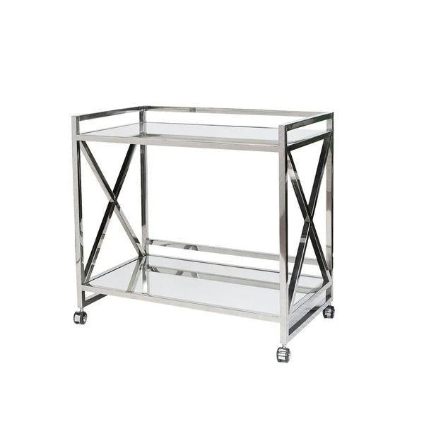 | Materials | Polished Stainless Steel; Mirrored Shelves; Four Casters |